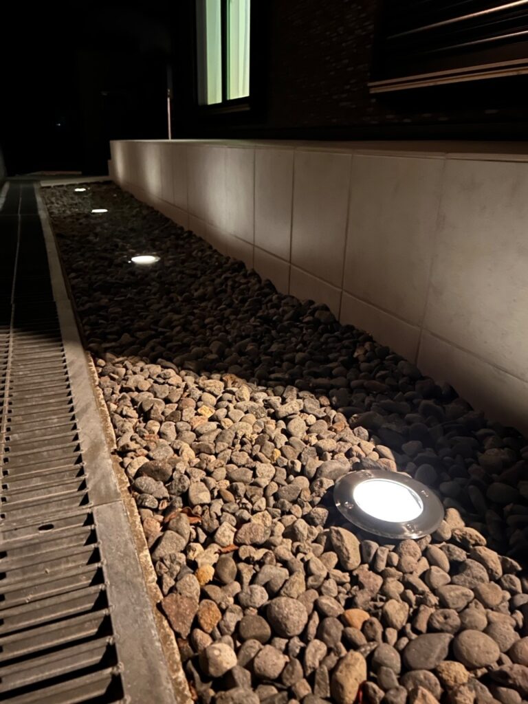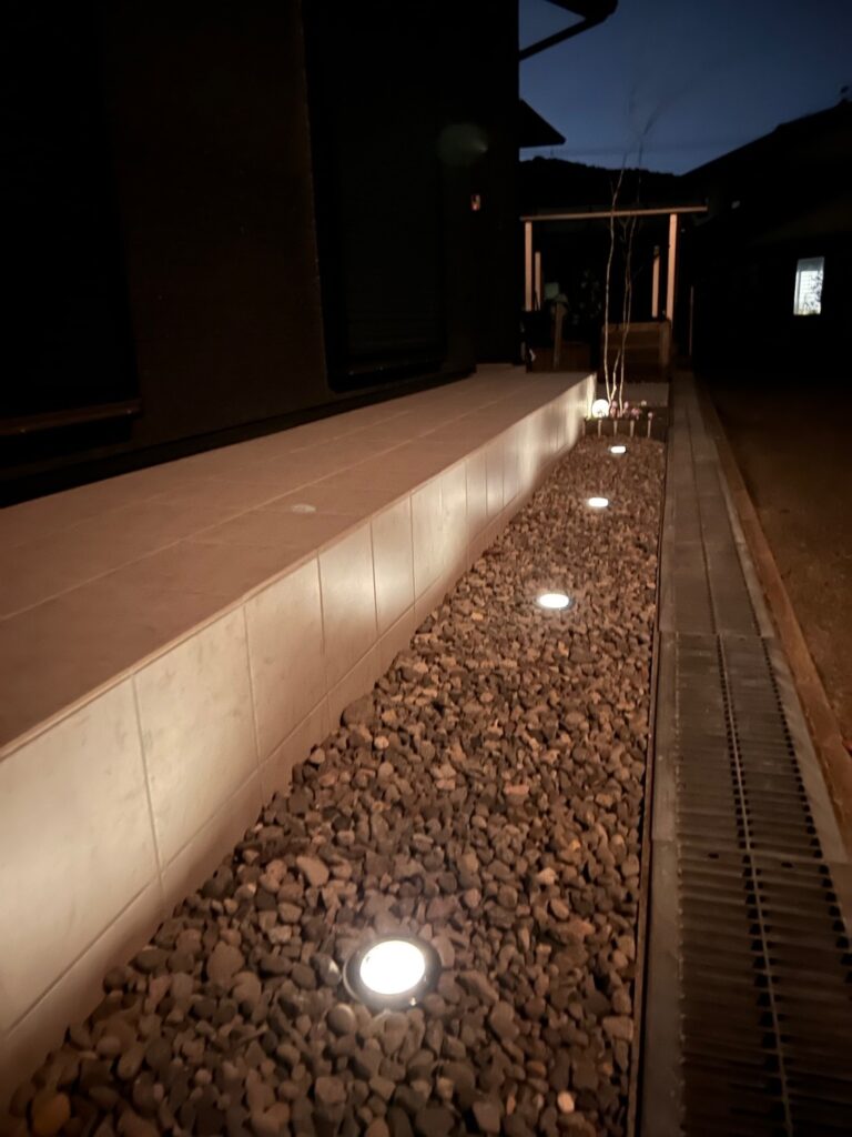 既に、植栽を斜めから照らすものは用意していたので、それとは違う明るさのプラスの仕方となります。これがあるだけでヴィラ風です!