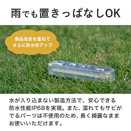 ソーラーライトなのに明るさも申し分ないです。暗かった駐車場が華やかになりました。追加して別のところにも置きたいです。