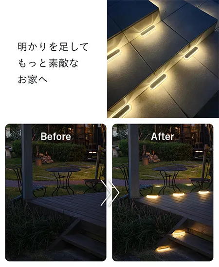 側面が光るので一段下がった場所に設置するのはどうかと思いましたがしっかり明るく照らしてくれています。 ソーラーライトがあるだけで、こんなに夜の景色が変わるんだと嬉しくなっております。 買い足したくなりました。