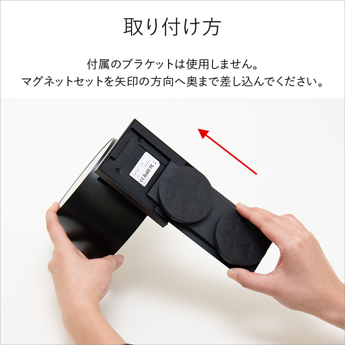 落下する恐れがあるため、マグネットタイプは動く場所(ドアなど)に設置しないでください。