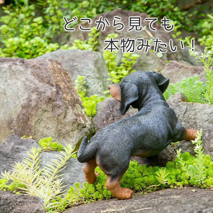 このリアルで超かわいいミニチュアダックスのオブジェは、